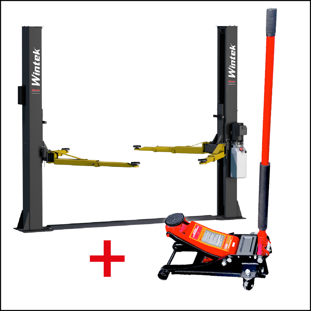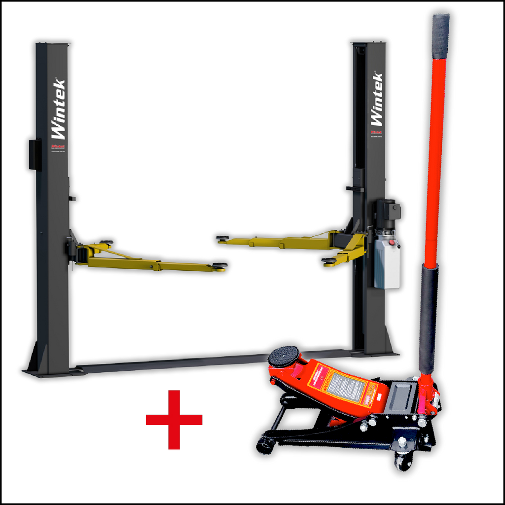 Combo Elevación: Rampa 2 Postes Altura Libre 9000 lbs + Gato Hidráulico de Patín 3 Ton