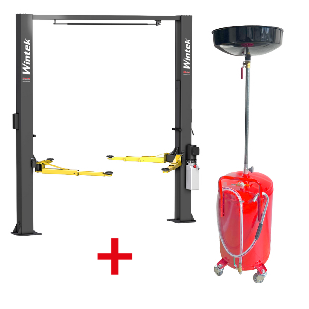 ¡Oferta! Combo Rampa 2 Postes Con Travesaño 9000 lbs + Receptor de Aceite 80 L
