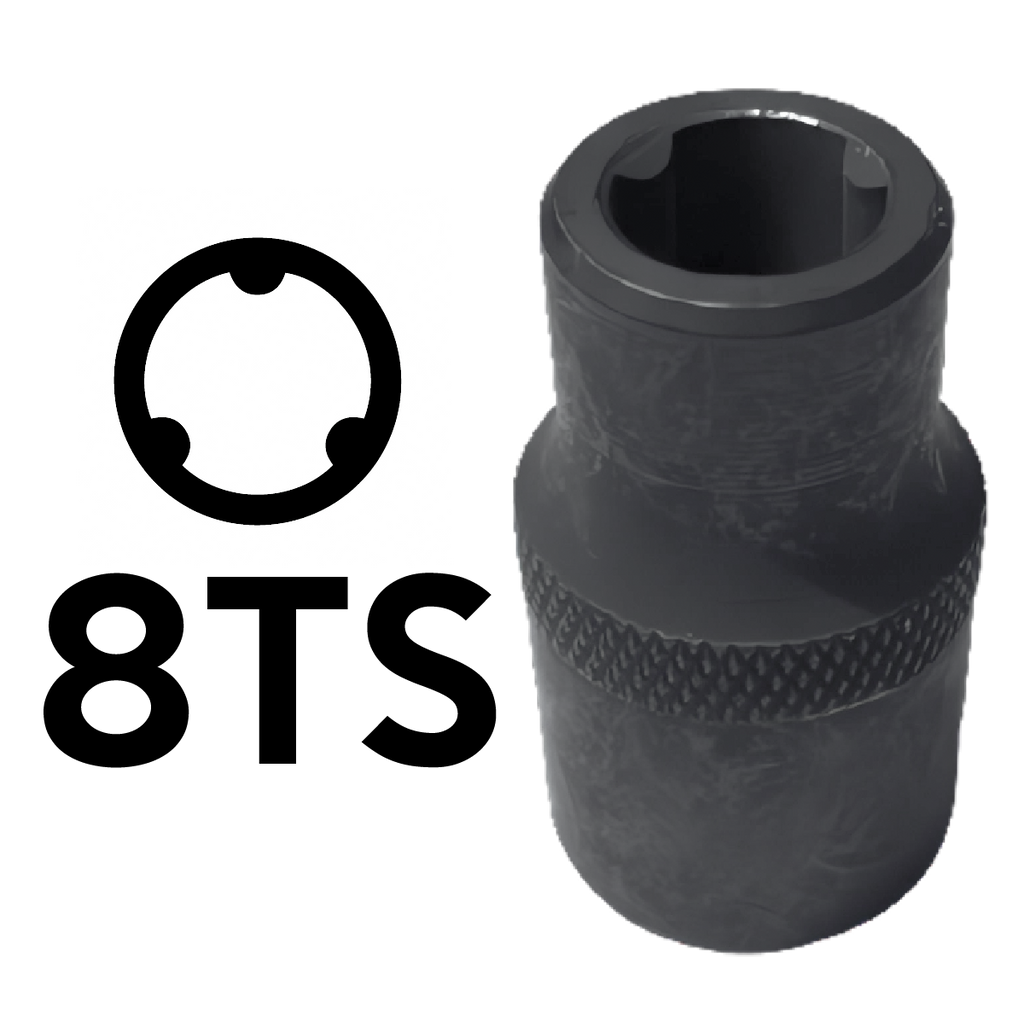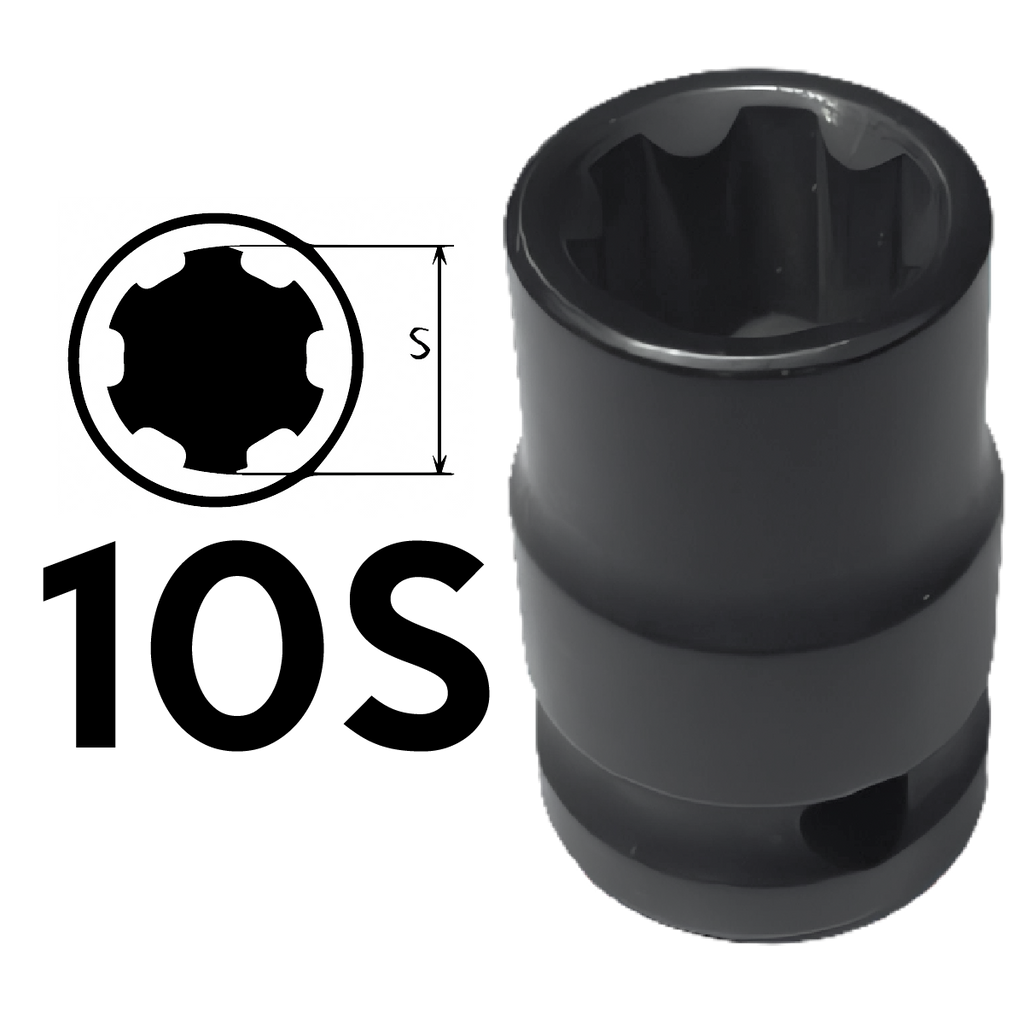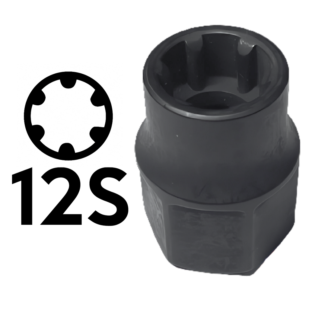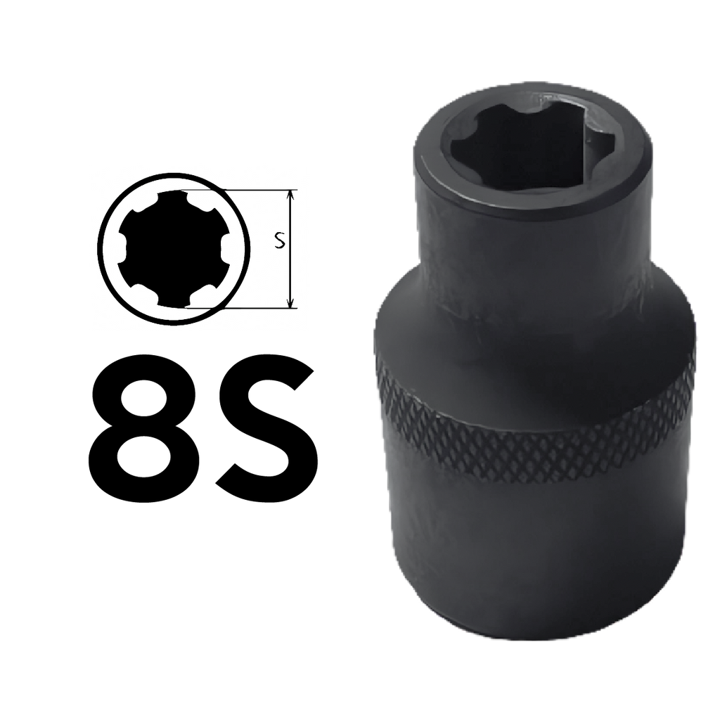 Incluye dados en medidas 10S, 8S, 12S y 8TS, compatibles con tornillos especiales de cabeza externa (external torx o "estrella invertida"). Ideal para mecánicos profesionales y talleres especializados.