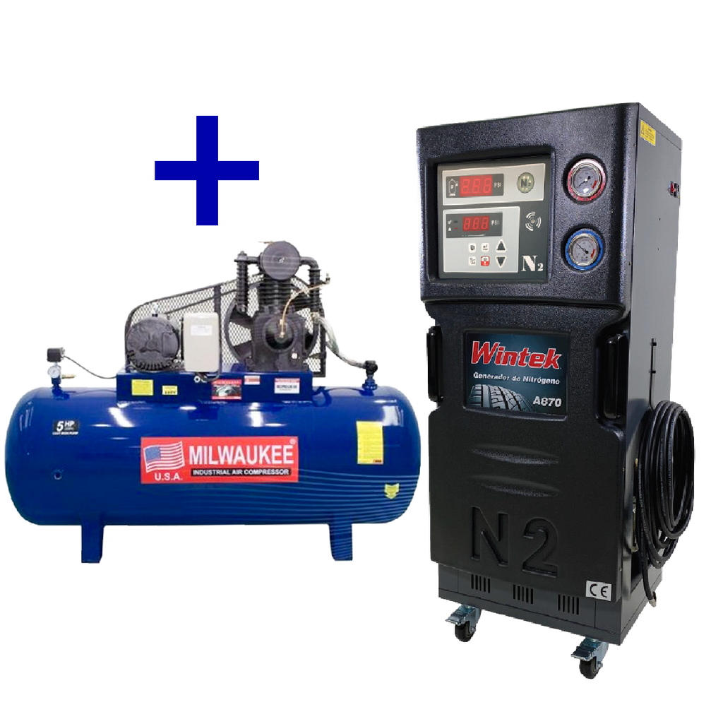 Kit Compresor Bifásico De 5HP 500 Litros 220V COMTX50CHB+ Generador N2 Móvil Automático WGNA870