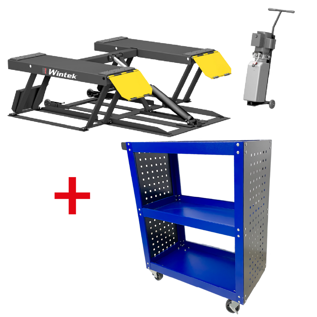 Combo De Rampa Frenera Eléctrica 6000 LB 110V + Carrito de Servicio Triple Charola